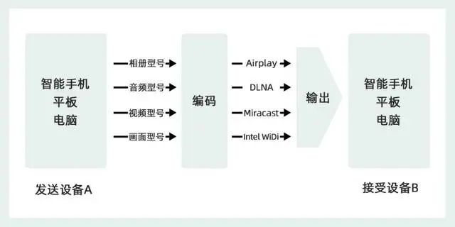 投屏是一種實現小屏畫面顯示在大屏設備上的技術,無線投屏器就是用以輔助投屏的專業設備,將原本不支持投屏的設備變成可以投屏的設備。本文就以一張圖和簡單說明為您介紹無線投屏器工作原理。