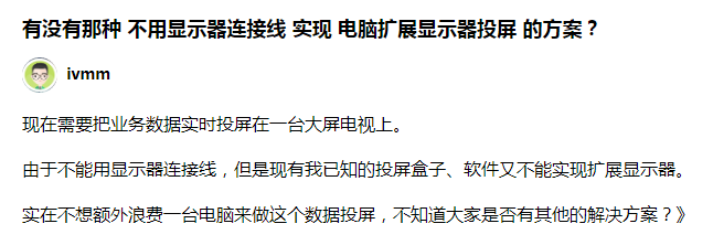 用戶需求:有沒有那種不用顯示器連接線實(shí)現(xiàn)電腦擴(kuò)展顯示器投屏的方案?